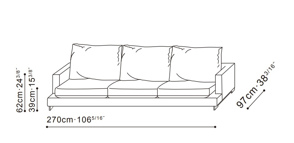 Afmetingen: B270 x D97 x H39/62